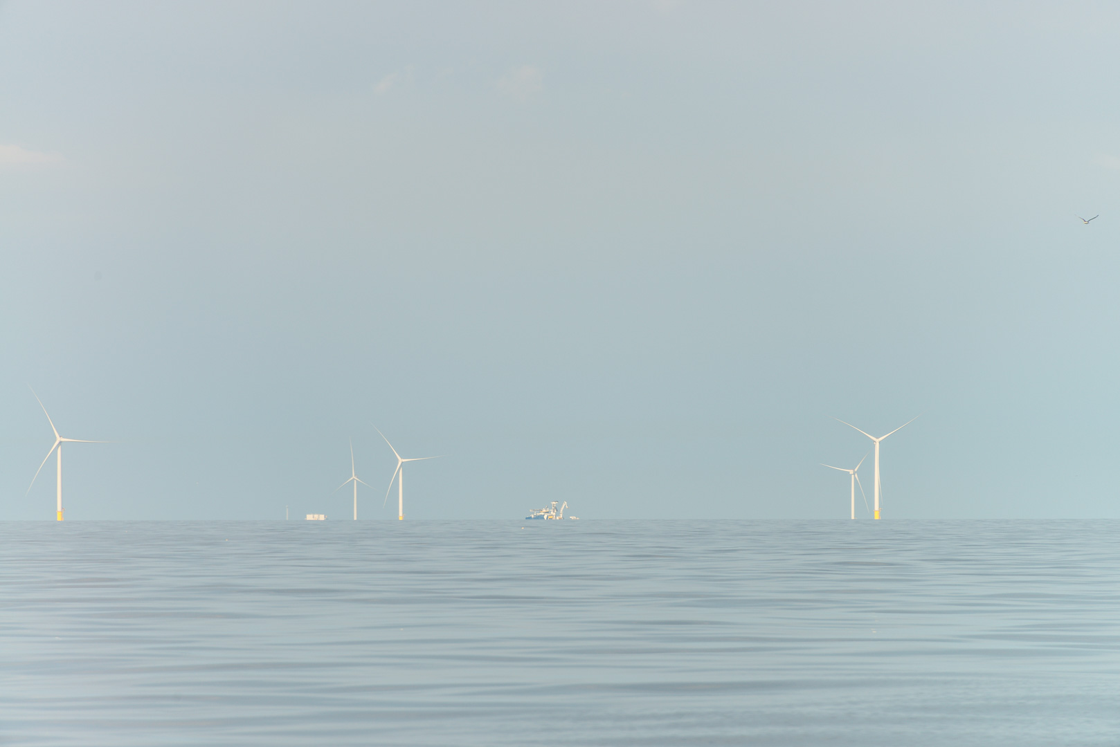 North Sea and Sky. It isn't supposed to be like this!Windfarms EverywhereStrange Ships EverywhereMore Wind TurbinesNearly There. Starboard mark at the entrance to the Den Helder channel.Another North Sea ShipYet Another WindfarmYep, It's a BirdBig Beautiful Sky Everywhere